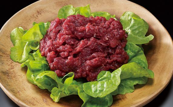 様々な部位の小間切れ肉から、スジを丁寧に取り除き赤身だけに仕上げた肉です。