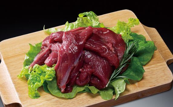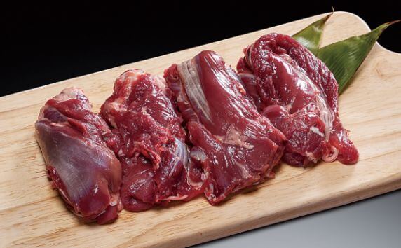 鹿肉の特徴であるスジの付いた肉を集めています。赤身肉が十分ついておリ、下茄でを行うことで美味しく使えます。